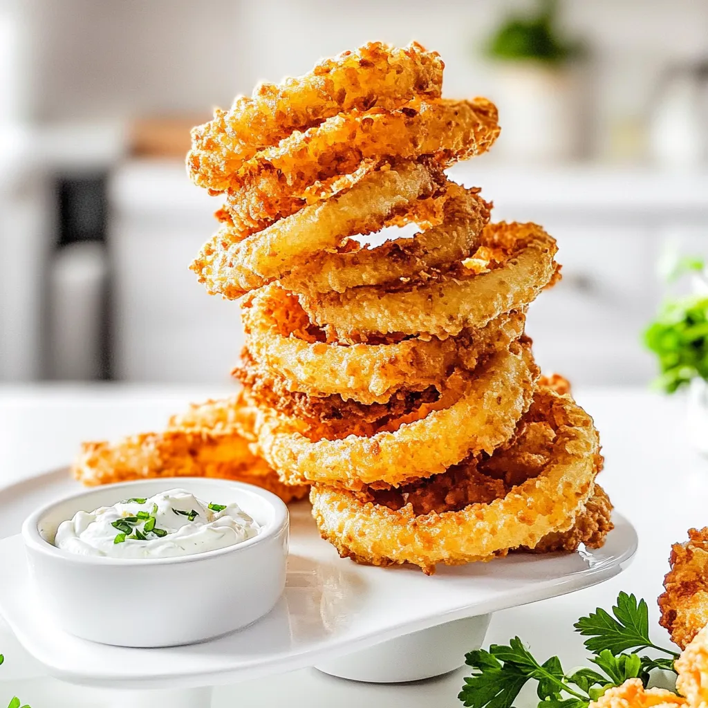 For a beautiful presentation, arrange the crispy onion rings on a bright platter. Place the zesty garlic dip in a small bowl at the center. To make it look even better, garnish with fresh parsley or chives. You can also pair these rings with other dips like spicy mayo or ranch. They complement the flavors really well!