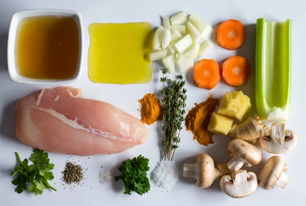 A nourishing chicken soup packed with anti-inflammatory ingredients for a revitalizing meal.