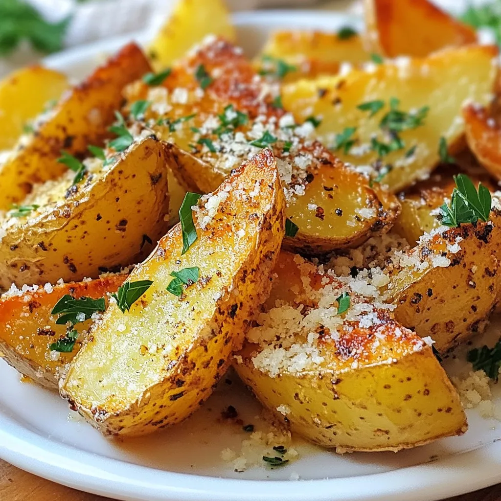 Crispy and flavorful potato wedges seasoned with garlic and Parmesan cheese.