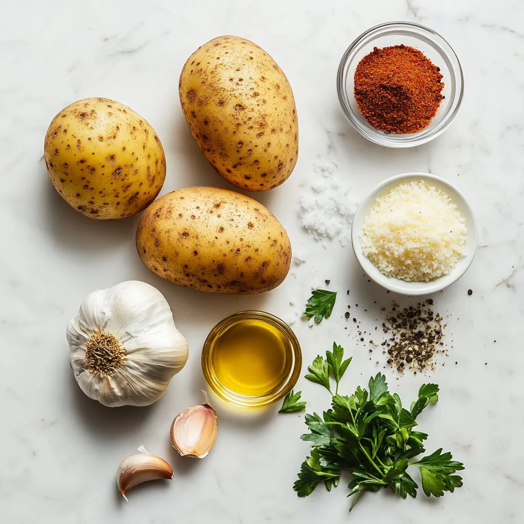Gather these ingredients for a tasty treat. The russet potatoes give a fluffy inside and crisp skin. Olive oil helps the spices stick and adds rich flavor. Garlic is key here, bringing a bold taste to the wedges. Freshly grated Parmesan cheese melts and crisps up nicely in the oven. Dried oregano adds an earthy note, while smoked paprika gives a hint of sweetness. Use sea salt and black pepper to elevate all the flavors. Lastly, fresh parsley adds a pop of color and freshness when you serve. This mix creates a mouthwatering snack or side dish. Enjoy every bite!