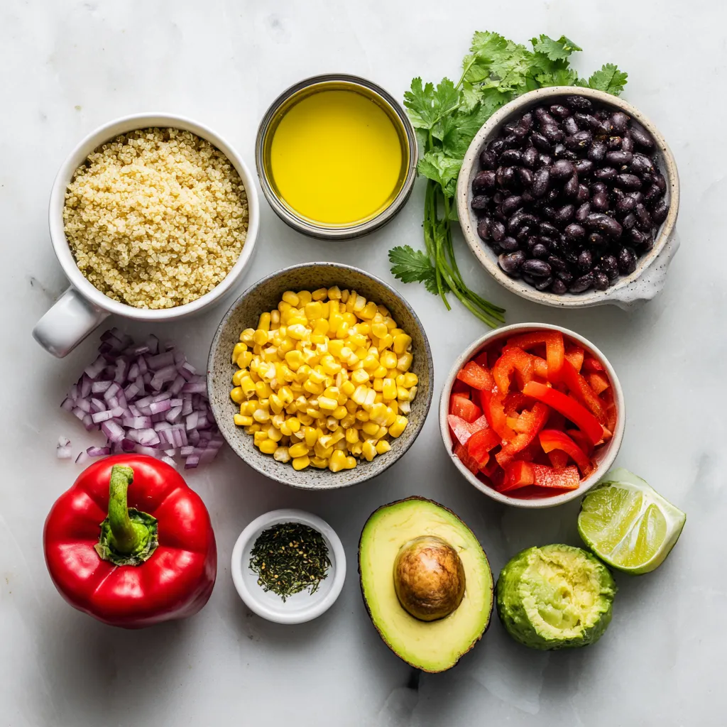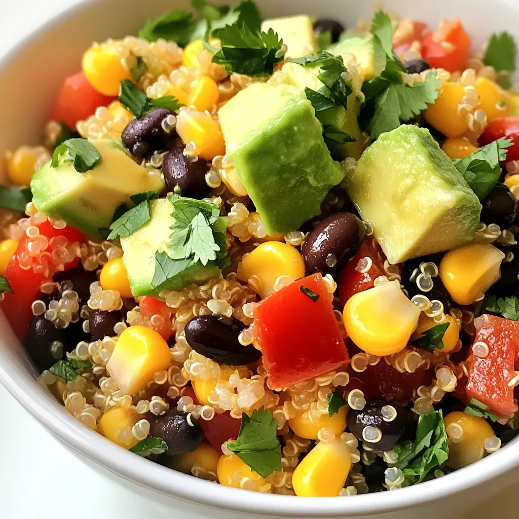 I love using these fresh ingredients in my Black Bean Quinoa Salad. The quinoa is the heart of the dish. It gives a nice base and adds protein. The vegetable broth or water helps cook the quinoa well, making it fluffy.