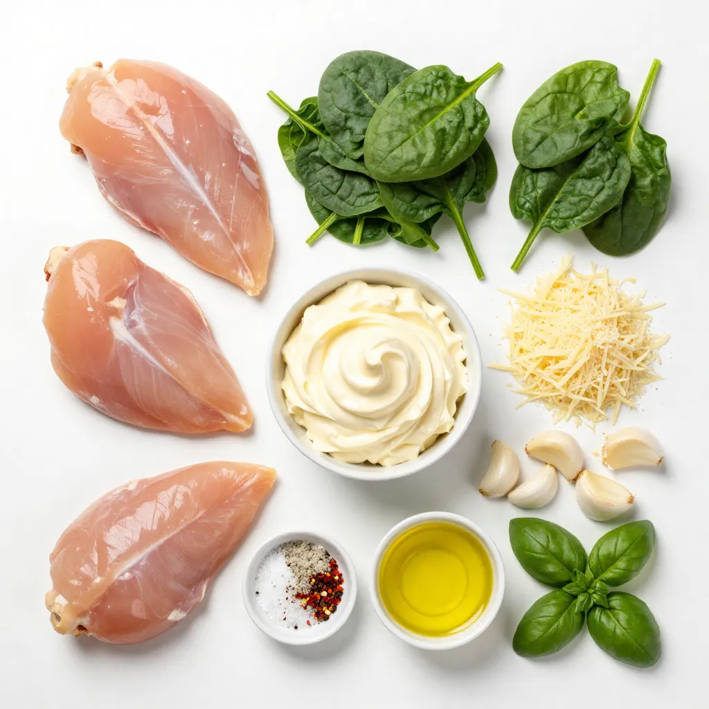 To make Cheesy Spinach Stuffed Chicken, gather the following ingredients: