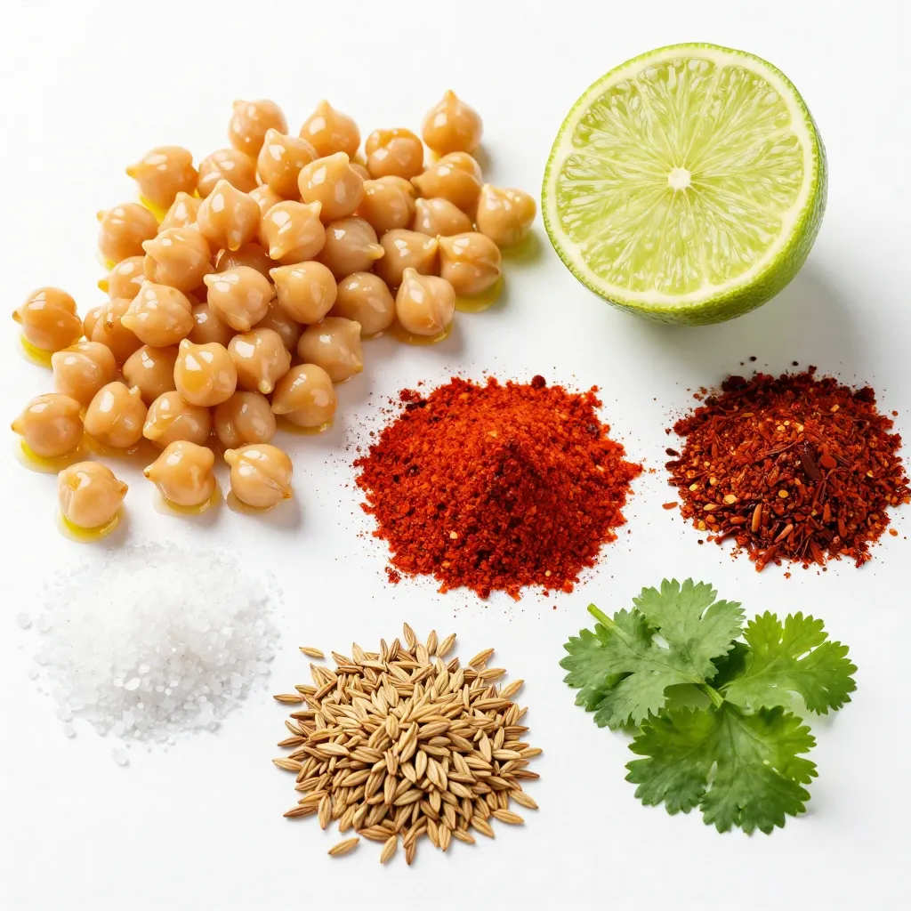 Crispy roasted chickpeas seasoned with chili and lime for a zesty snack.