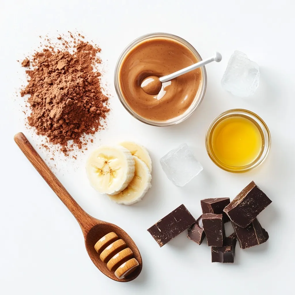 To start, grab your frozen banana. This banana adds a smooth, creamy texture. Peel it carefully and break it into smaller pieces. This helps the blender mix everything well. Next, gather all your ingredients. You will need creamy peanut butter, almond milk, cocoa powder, honey or maple syrup, and vanilla extract.