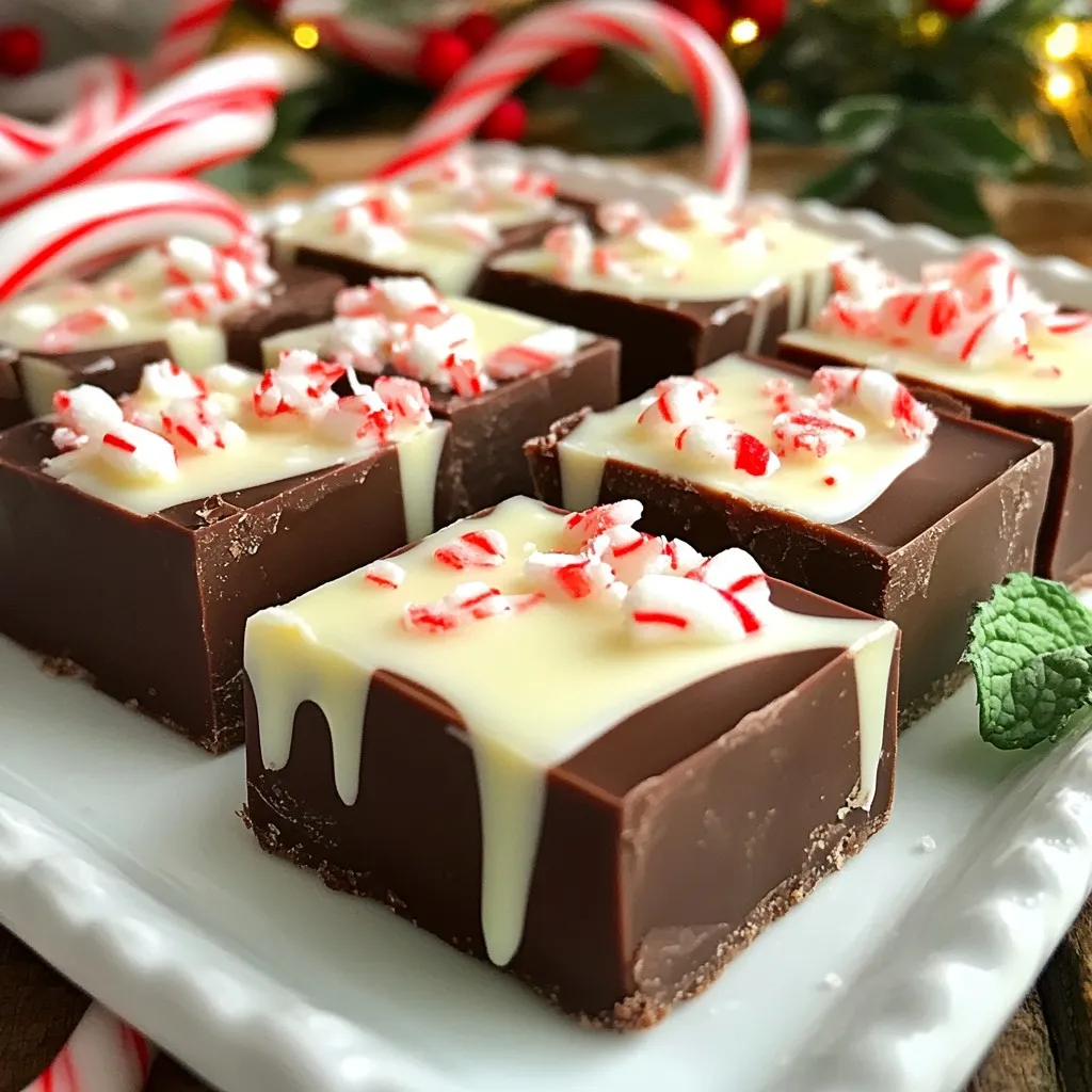 - 2 cups semisweet chocolate chips - 1 cup sweetened condensed milk - 1/4 cup unsalted butter, cut into small pieces - 1 teaspoon peppermint extract - 1/4 teaspoon salt - 1/2 cup crushed candy canes (plus extra for garnish) - 1/2 cup white chocolate chips (optional, for drizzling) When making Chocolate Peppermint Fudge, accurate measurements matter. Use standard measuring cups and spoons. For the chocolate chips, fill the cup to the top and level it off. For butter, cut it into small pieces before measuring. This helps it melt evenly. Use a teaspoon for the peppermint extract and salt. These small amounts can change the flavor. You can swap some ingredients if needed. Use dark chocolate chips if you like a richer flavor. If you don't have sweetened condensed milk, use evaporated milk with sugar. For a dairy-free version, use plant-based butter. Leave out the white chocolate if you want a simpler fudge. If you prefer a different mint flavor, use mint extract instead of peppermint. {{ingredient_image_2}} Start with an 8x8 inch baking pan. Line it with parchment paper. Make sure the paper hangs over the edges. This helps later when you lift out the fudge. Grab a medium saucepan. Add the semisweet chocolate chips, sweetened condensed milk, and butter pieces. Place the saucepan on low heat. Stir this mixture for 5-7 minutes. Keep stirring until it melts and looks smooth. It should be glossy and thick. Take the saucepan off the heat. Pour in the peppermint extract and salt. Stir well to mix everything together. Now, gently fold in the crushed candy canes. This adds a nice crunch and festive taste. Next, pour the mixture into your prepared pan. Use a spatula to spread it out. Smooth the top so it looks nice. If you want to use white chocolate, melt it in a bowl. Heat it in 30-second bursts in the microwave. Stir until it’s smooth. Drizzle this white chocolate over the fudge for a pretty design. Finally, sprinkle more crushed candy canes on top for extra flair. Put the pan in the fridge for at least 2 hours. Wait until it feels firm. After it sets, lift the fudge out using the parchment paper. Cut it into squares and enjoy! To get the best fudge texture, use low heat when melting. High heat can burn the chocolate. Stir often to keep it smooth. The mixture should be shiny and thick. If it seems too soft, let it cool a bit before pouring it into the pan. Cooling helps it set better. One common mistake is not measuring ingredients correctly. Use a kitchen scale for chocolate and butter for best results. Another mistake is not mixing well. Every scoop should have an even mix of chocolate and candy canes. If you skip the salt, the fudge will taste flat. Always include it for flavor balance. To make your fudge look special, drizzle melted white chocolate on top. This adds a nice touch. Use a fork to create wavy lines. Then, sprinkle more crushed candy canes over the top. This gives a festive look and crunch. Arrange the fudge on a colorful plate to impress your guests. Pro Tips Use High-Quality Chocolate: The flavor of your fudge heavily relies on the quality of the chocolate you use. Opt for premium semisweet chocolate chips for a richer taste. Chill for Perfect Texture: Allow the fudge to set in the refrigerator for at least 2 hours. This ensures a firm texture that holds its shape beautifully when cut. Customize Your Toppings: Feel free to get creative with toppings beyond crushed candy canes. Consider adding chopped nuts, sprinkles, or even drizzles of caramel for a unique twist. Store Properly: Keep your fudge in an airtight container at room temperature for up to a week, or refrigerate it for longer freshness. Just ensure it’s well-wrapped to maintain its flavor. {{image_4}} You can switch up flavors for fun. Try using dark chocolate instead of semisweet. This gives a richer taste. You can also add orange zest for a nice citrus twist. For a more unique twist, mix in almond extract. You can even try adding a touch of espresso for a coffee kick. The fun part is that you can mix and match flavors to find your favorite. Making this fudge vegan is easy. Use dairy-free chocolate chips and coconut milk instead of sweetened condensed milk. You can use a vegan butter substitute to keep the taste rich. For gluten-free options, check that your chocolate chips are gluten-free. This fudge can be enjoyed by everyone with these small changes. Toppings can make your fudge even better. You can add chopped nuts for some crunch. Try walnuts, pecans, or hazelnuts. Drizzle caramel sauce for a sweet touch. You can also sprinkle sea salt for a nice contrast. Get creative! Use different candies or even mini marshmallows. These toppings add flavor and make your fudge look festive. Store your chocolate peppermint fudge in an airtight container. Use wax paper between layers to prevent sticking. Keep the fudge in a cool, dry place, away from heat and sunlight. This will help maintain its creamy texture and rich flavors. When stored properly, the fudge lasts about two weeks. If you keep it in the fridge, it can last up to three weeks. Always check for any signs of spoilage before eating. The flavors may change slightly over time, but it should still taste great. To freeze your fudge, cut it into squares first. Wrap each piece tightly in plastic wrap. Then, place the wrapped fudge in a freezer-safe bag or container. It can last for up to three months in the freezer. When you're ready to enjoy it, let it thaw in the fridge overnight. Yes, you can use milk chocolate. It will make your fudge sweeter. The texture will be creamier, but it will still taste great. Just keep in mind that the peppermint flavor may stand out more. To firm up your fudge, add more chocolate chips. Use a higher ratio of chocolate to condensed milk. You can also chill it longer in the fridge. Some people prefer to add a bit of powdered sugar, too. Sure, you can skip the peppermint extract. Your fudge will taste more like chocolate. You can try other f