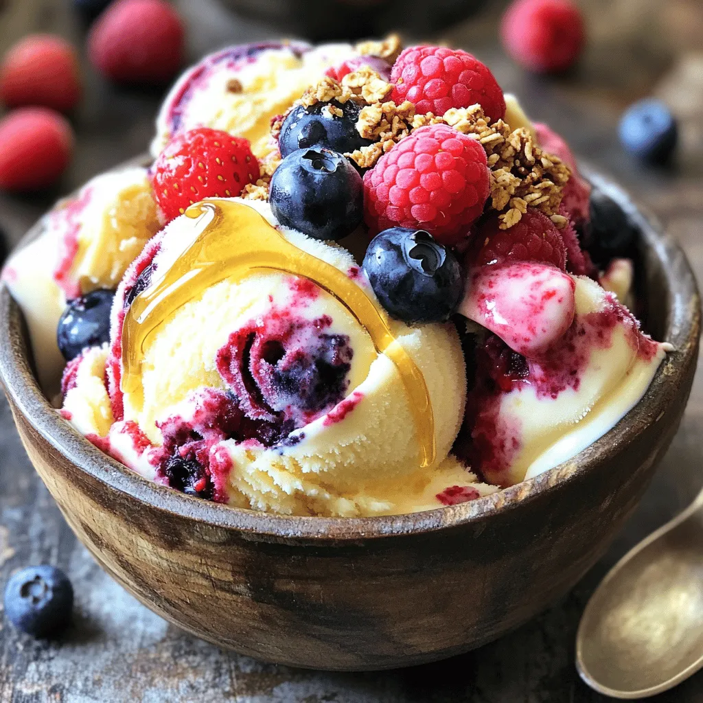 You can change up the berries in your ice cream. Use seasonal fruits like strawberries, blueberries, or blackberries. These local berries bring fresh flavors to the dish. You can also mix in some raspberries for a tart twist. If you want to be more adventurous, try adding peaches or mangoes for a fun summer vibe. This can make your ice cream unique and tasty.