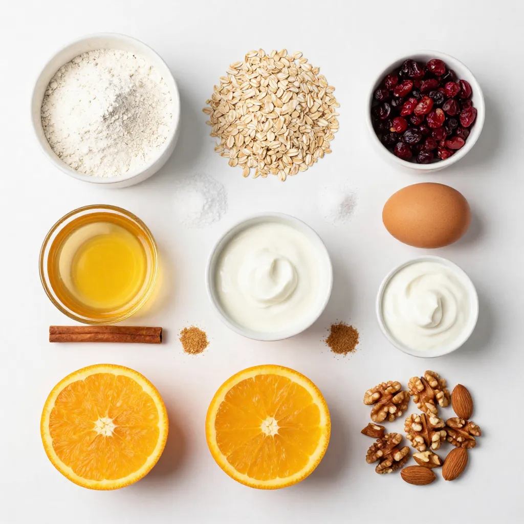 To make Cranberry Orange Energy Muffins, you need a mix of wholesome ingredients. Here is the complete list: