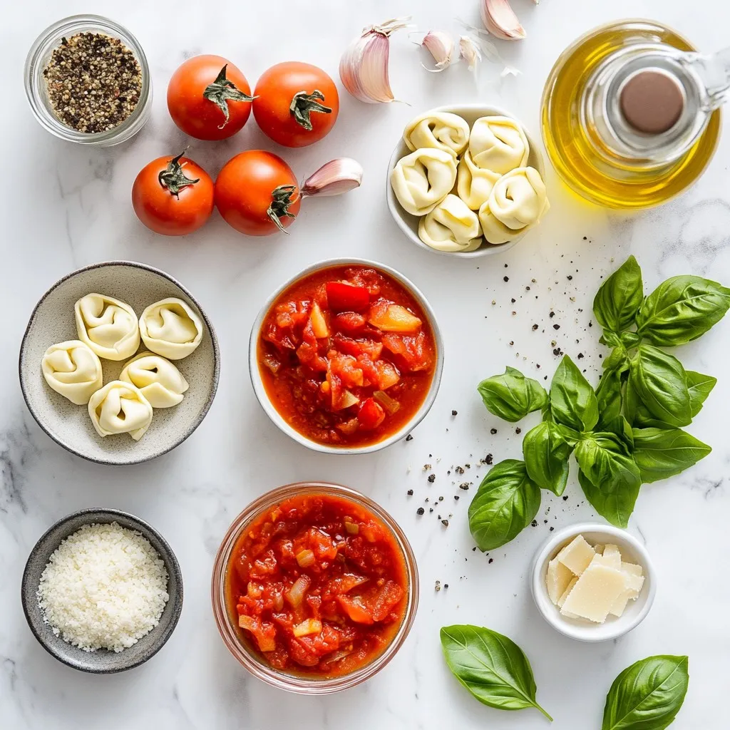 For this creamy tomato tortellini soup, I focus on fresh, simple ingredients. The vegetable broth serves as a rich base. It adds depth and warmth. The crushed tomatoes bring a lovely sweetness and vibrant color. They create a comforting flavor that pairs well with pasta.