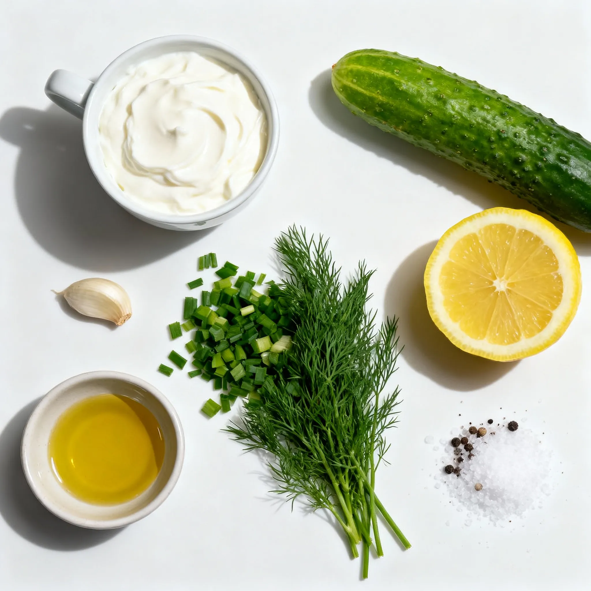 • Mix Ingredients: In a large mixing bowl, combine the well-drained grated cucumber with the plain Greek yogurt and finely chopped fresh dill. Stir gently to ensure they are evenly mixed.
