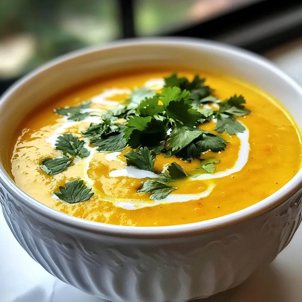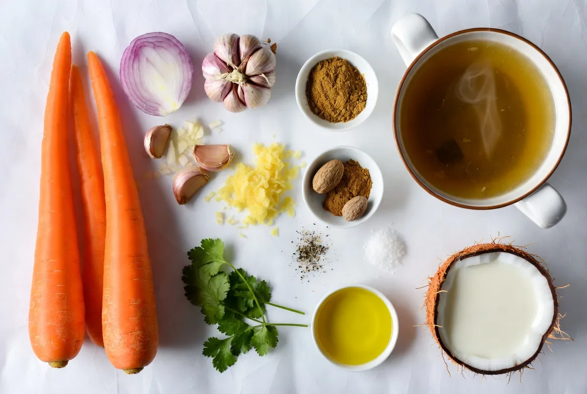 A creamy and flavorful soup made with carrots, spices, and coconut milk.