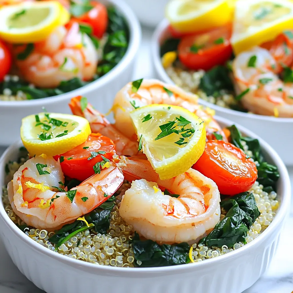 Now it’s time to build your bowls! Divide the quinoa or rice mixture evenly into 4 serving bowls. Top each bowl with the lemon garlic shrimp. Make sure to include all the tasty juices from the skillet. For a fresh touch, sprinkle some finely chopped parsley on top. You can also add a lemon wedge on the side for extra zest. Enjoy your meal!