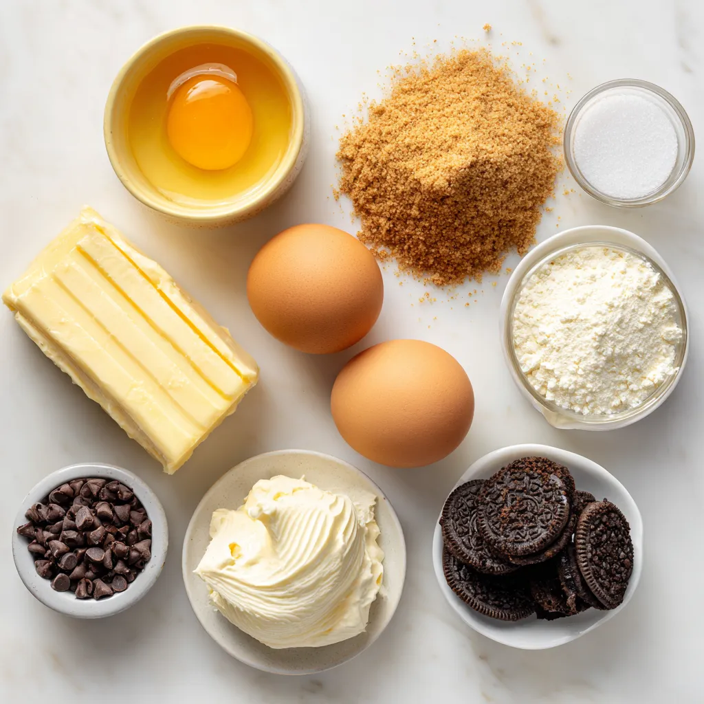 To make these Oreo cheesecake stuffed cookies, you need some simple and tasty ingredients. First, use unsalted butter for the best flavor. The butter should be softened to mix well with the sugars. Granulated sugar and brown sugar give the cookies a sweet touch.