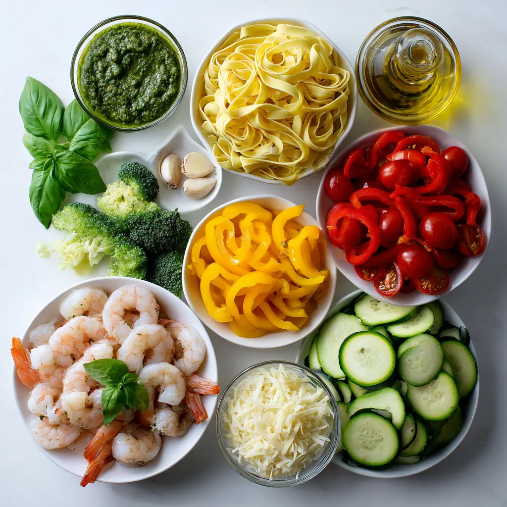 List of Ingredients for Pesto Shrimp Pasta Primavera