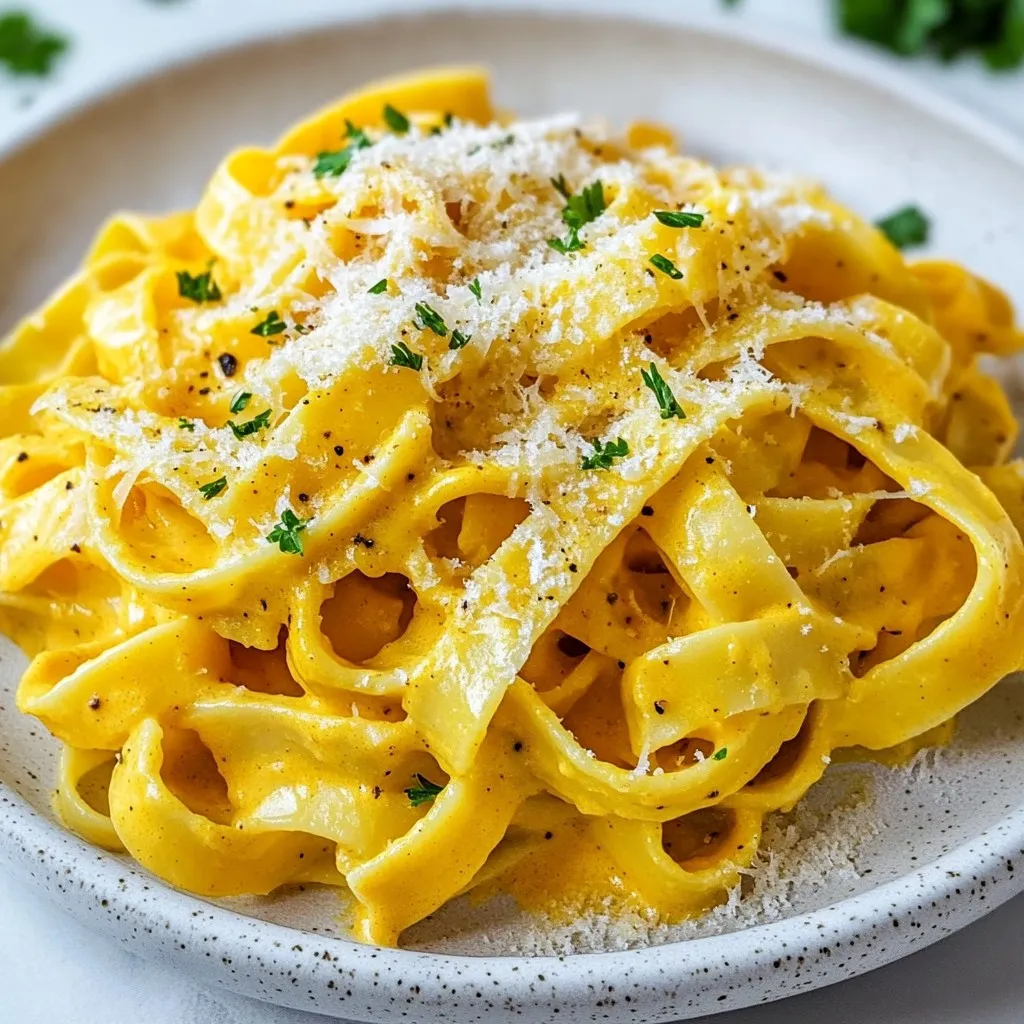 A deliciously creamy pasta dish featuring pumpkin and Parmesan, perfect for autumn.