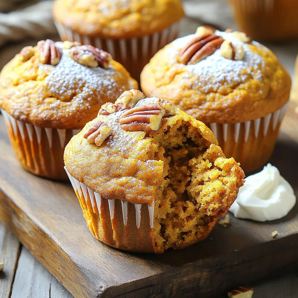 - 1 cup pumpkin puree - 1/2 cup packed brown sugar - 1/4 cup granulated sugar - 1/3 cup vegetable oil (or melted coconut oil for extra flavor) - 2 large eggs, at room temperature - 1 teaspoon pure vanilla extract In this recipe, the pumpkin puree is key. It gives the muffins their moist texture and rich flavor. Brown sugar adds a hint of caramel taste, while granulated sugar balances it out. Vegetable oil helps keep the muffins fluffy. Using eggs binds everything and adds richness. The vanilla extract rounds out the sweet notes. - 1 1/2 cups all-purpose flour - 1 teaspoon baking powder - 1/2 teaspoon baking soda - 1 teaspoon ground cinnamon - 1/2 teaspoon ground nutmeg - 1/4 teaspoon ground ginger - 1/4 teaspoon salt The flour is the base of the muffins, providing structure. Baking powder and baking soda help them rise. The spices—cinnamon, nutmeg, and ginger—give a warm, cozy flavor. Salt enhances all these tastes, making each bite better. - 1/2 cup chopped pecans (reserve a handful for topping) - Optional: 1/4 cup semisweet chocolate chips for added indulgence Chopped pecans add a nice crunch and nutty flavor. If you like chocolate, adding chips gives a sweet touch. Reserve some pecans to sprinkle on top for extra texture when baking. These add-ins make the muffins even more special and tasty. First, preheat your oven to 350°F (175°C). While it heats, prepare your muffin tin. Line it with paper liners or grease it lightly with cooking spray or oil. This step helps the muffins come out easily. In a large mixing bowl, combine the pumpkin puree, brown sugar, granulated sugar, vegetable oil, eggs, and vanilla extract. Use a whisk or an electric mixer to blend these until smooth. This mixture adds moisture and flavor to your muffins. In another bowl, whisk together the all-purpose flour, baking powder, baking soda, cinnamon, nutmeg, ginger, and salt. Mixing these dry ingredients well ensures that the flavors and leavening agents spread evenly through your muffins. Next, gradually fold the dry ingredients into the pumpkin mixture. Use a spatula or wooden spoon to mix gently. Stop once there are no dry spots. Overmixing can make your muffins tough, so be careful here. Spoon the batter into the prepared muffin cups, filling each about two-thirds full. If you want, add a few chopped pecans on top for extra crunch and a nice look. This small step makes a big difference in presentation. Now, place the muffin tin in the oven and bake for 18-22 minutes. To check if they are done, insert a toothpick into the center of a muffin. It should come out clean or with just a few moist crumbs. This tells you they are ready. To avoid dense muffins, use room temperature eggs. Cold eggs can make the batter thick. Also, measure the flour correctly. Too much flour makes muffins heavy. Use the spoon-and-level method for best results. The key to fluffy muffins is not overmixing the batter. Mix just until the dry ingredients disappear. You want some lumps. Overmixing makes the muffins tough. Serve your muffins warm for the best taste. A light dusting of powdered sugar adds charm. You can also spread cream cheese on top. For a sweet twist, drizzle honey over each muffin. Arranging the muffins on a colorful plate makes them more inviting. Adding whole pecans on top gives a nice crunch. To change up the flavor, add spices like cardamom or allspice. You can also swap pecans for walnuts or almonds. Adding 1/4 cup of dried cranberries or raisins gives a fruity touch. For chocolate lovers, mix in some chocolate chips. This adds richness to each bite. You can even try different extracts, like almond or maple. Each choice brings a new twist to this classic muffin. {{image_4}} For those with dietary needs, you can make these muffins fit your lifestyle. If you need gluten-free muffins, swap the all-purpose flour with a gluten-free blend. Many brands have great options that work well in baking. For vegan muffins, replace the eggs with flax eggs. To make a flax egg, mix one tablespoon of ground flaxseed with three tablespoons of water. Let it sit for a few minutes until it thickens. You can also use applesauce or mashed bananas instead of eggs for moisture. Want to change the taste? You can add spices like cardamom or allspice for a warm kick. Try using chopped walnuts or almonds instead of pecans for a different nutty flavor. If you want something fruity, you can swap pumpkin puree for applesauce or mashed bananas. This will give your muffins a new flavor while keeping them moist. Get creative with your spice blends! Try using pumpkin pie spice instead of individual spices for an easy mix. Add a pinch of cayenne pepper for heat or even some cocoa powder for a chocolate twist. These options will help you make pumpkin pecan muffins that suit your taste and dietary needs! To keep your pumpkin pecan muffins fresh, store them in an airtight container. Place parchment paper between layers if stacking. This helps avoid sogginess. Keep them at room temperature for up to three days. If you want them to last longer, consider freezing. To freeze muffins, let them cool completely first. Wrap each muffin in plastic wrap. Then, place them in a freezer bag. Squeeze out as much air as possible before sealing. They can stay frozen for up to three months. To reheat, take them out and let them thaw. You can warm them in the microwave for about 20 seconds or in an oven at 350°F for 10-15 minutes. These muffins stay fresh for about three days at room temperature. After that, they may start to dry out. If you freeze them, they can last much longer, and you’ll still enjoy that fresh-baked taste. You can use other purees like applesauce or sweet potato. These options give a nice flavor. You can also make your own pumpkin puree by cooking and blending fresh pumpkin. Yes, fresh pumpkin works well. To use it, cook the pumpkin until soft, then blend it into a smooth puree. This can add a fresh taste to your muffins. Check the muffins around 18 mi