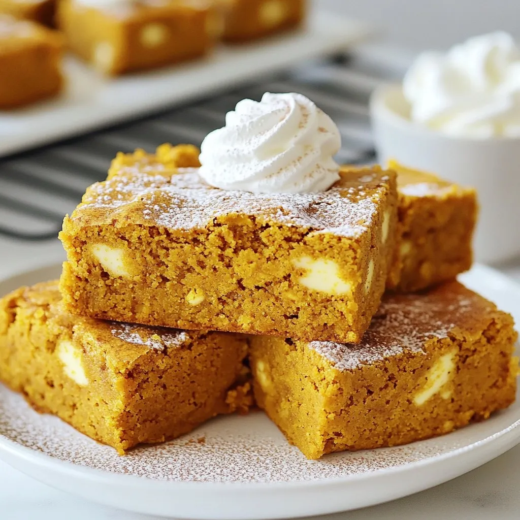 Delicious blondies infused with pumpkin and warm spices, perfect for fall.