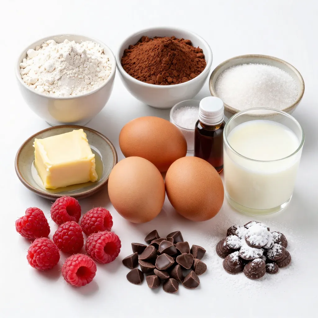 - 1 cup all-purpose flour - 1/2 cup unsweetened cocoa powder - 1 cup granulated sugar - 1 teaspoon baking powder - 1/2 teaspoon baking soda - 1/4 teaspoon salt - 1/2 cup unsalted butter, melted and slightly cooled - 2 large eggs, at room temperature - 1 teaspoon pure vanilla extract - 1/2 cup buttermilk, at room temperature - 1 cup fresh raspberries, rinsed and drained - 1/2 cup dark chocolate chips (preferably 60-70% cocoa) - Optional: powdered sugar for a delicate dusting - Powdered sugar: Adds a sweet touch and nice look. - Nuts: Walnuts or pecans add crunch and healthy fats. - Cinnamon: A sprinkle can boost flavor and warmth. - Gluten-Free Flour: Use this for a gluten-free option. - Dairy-Free Butter: Swap with coconut oil or vegan butter for a dairy-free treat. - Egg Substitute: Use flaxseed meal or applesauce for egg-free muffins. {{ingredient_image_2}} This blog post covered all the key steps to make perfect muffins. We discussed the ingredients, from essential measurements to optional adds that boost flavor. I shared tips for mixing and baking to achieve a great texture. We explored variations you can try and how to store muffins for lasting freshness. Remember, making muffins is simple and fun. With practice, you can create delicious treats your friends and family will love. Be bold and experiment with different flavors and textures!
