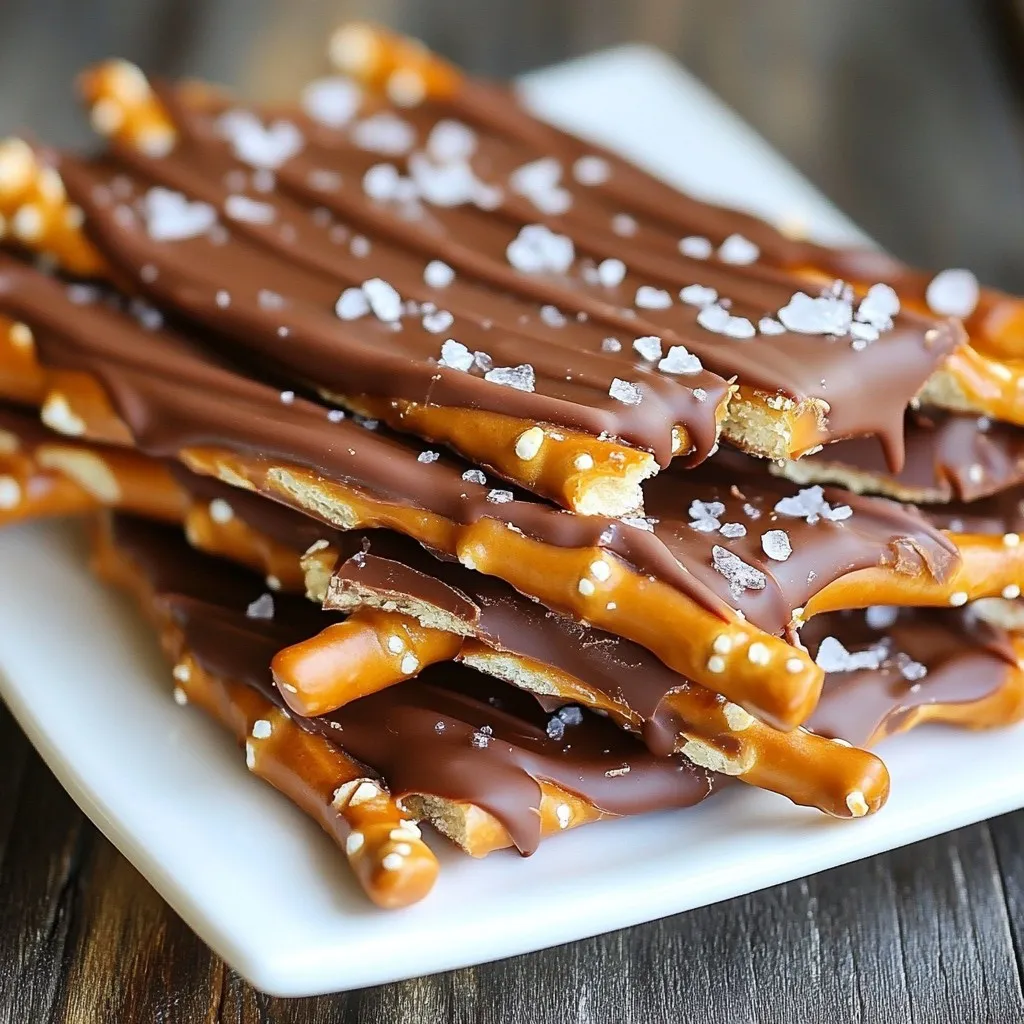 - 2 cups pretzel sticks - 1 cup semisweet chocolate chips - 1 cup caramel bits - 1/4 cup heavy cream - Sea salt, for sprinkling - Baking sheet - Parchment paper - Medium-sized saucepan - Wooden spoon or spatula - Microwave-safe bowl Gathering the right ingredients and tools is key for making salted caramel pretzel bark. You need crunchy pretzel sticks, sweet chocolate chips, and creamy caramel bits for the base. The pretzel sticks give a nice crunch. The chocolate adds rich flavor, while the caramel brings sweetness. For tools, you will want a baking sheet and parchment paper. The paper keeps the bark from sticking. A medium-sized saucepan helps melt the caramel smoothly. A wooden spoon or spatula makes stirring easy. Lastly, a microwave-safe bowl is perfect for melting the chocolate. With these ingredients and tools ready, you can start making your bark. It’s fun and simple! {{ingredient_image_2}} 1. Preheat your oven to 350°F (175°C). This heat helps crisp the pretzels. 2. Line a baking sheet with parchment paper. This step prevents sticking and makes cleanup easy. 3. Arrange pretzel sticks in a single layer on the baking sheet. Make sure they do not overlap for even baking. 1. Combine caramel bits and heavy cream in a medium-sized saucepan. Use low heat to avoid burning the caramel. 2. Stir the mixture continuously with a wooden spoon or spatula. Keep stirring until it melts into a smooth consistency. This may take a few minutes. 1. Pour the melted caramel over the cooled pretzels. Use a spatula to spread it evenly. Each pretzel should be well-coated. 2. Melt the semisweet chocolate chips in a microwave-safe bowl. Heat in 30-second intervals. Stir after each interval until smooth. 3. Drizzle the chocolate over the caramel-coated pretzels. Aim for an even coverage for a nice look. 4. Sprinkle sea salt over the warm chocolate. The salt adds a nice contrast to the sweet caramel. 5. Place the baking sheet in the refrigerator for about 30 minutes. This helps the chocolate set and harden. Once the bark is firm, break it into pieces. Enjoy your tasty treat! To keep pretzels crisp, bake them just right. Bake them for 5-7 minutes until warm. Watch them closely to avoid burning. After baking, let them cool completely on the sheet. This step is key for crunch. For a silky chocolate finish, melt the chocolate gently. Use a microwave-safe bowl. Heat in 30-second bursts, stirring in between. This keeps the chocolate smooth and avoids burning. Drizzle it over the caramel. The warm chocolate will spread easily. Serving and gifting the bark can be fun! Arrange the pieces on a nice platter. Use a colorful plate for a pop of style. You can also fill a clear jar with the bark. Tie a pretty ribbon around it for a lovely gift. For storage, consider decorative tins or boxes. This not only keeps the bark fresh but also makes it look great. Choose containers that are air-tight to keep the bark crunchy. Pro Tips Use Fresh Pretzels: For the best flavor and texture, use fresh or high-quality pretzel sticks. Stale pretzels can result in a less enjoyable bite. Adjust the Salt: Feel free to adjust the amount of sea salt to your taste preference. A little extra salt can enhance the sweet caramel and chocolate flavors! Experiment with Chocolates: Try different types of chocolate, such as dark or white chocolate, for a unique twist on your bark. Each will give a different flavor profile! Storage Tips: Store the pretzel bark in an airtight container at room temperature for up to a week. For longer freshness, keep it in the fridge! {{image_4}} You can change the flavor of your salted caramel pretzel bark easily. Try using milk chocolate or dark chocolate instead of semisweet chocolate. Each type brings a different taste, so pick what you love most. You can also add nuts or dried fruits for more texture. Chopped pecans, almonds, or cranberries work well. They add a nice crunch and flavor burst. Mix and match to create your perfect bark! If you need gluten-free options, look for gluten-free pretzels. Many brands offer these, and they taste great. You can enjoy this treat without worry. For those avoiding dairy, use dairy-free chocolate. There are many brands available that melt nicely. This way, you can still enjoy this sweet treat, even with dietary needs. To keep your Salted Caramel Pretzel Bark fresh, store it in an airtight container. This prevents air from making the bark chewy. A glass jar or a plastic container with a tight lid works great. Be sure to let the bark cool completely before sealing it up. If it’s warm, it can create moisture inside the container, affecting texture. You can freeze Salted Caramel Pretzel Bark for longer storage. To do this, cut the bark into pieces and place them in a single layer on a baking sheet. Freeze until solid, then transfer the pieces to a freezer-safe bag. Remove as much air as possible to prevent freezer burn. The bark can stay frozen for up to three months. When you’re ready to enjoy it, let the bark thaw in the fridge for a few hours. This keeps it tasty and crunchy. You can use soft caramels in place of caramel bits. Just unwrap them and chop them into small pieces. Another option is to make homemade caramel from sugar and cream. This way, you can control the texture and taste. If you want something quick, try using dulce de leche. It works well and has a nice flavor. Yes, you can make this recipe ahead of time. Prepare the bark and store it in an airtight container. It stays fresh for several days. If you want to make it even earlier, you can freeze it. Just wrap the bark tightly in plastic wrap before placing it in the freezer. When ready to eat, let it thaw in the fridge for a few hours. To avoid melting issues, use good quality chocolate. When melting, do it slowly in short bursts. Heat the chocolate in the microwave for 30 seconds at a time, stirring in between. This keeps the chocolate from burning. If it gets too thick, add a little bit of vegetable oil or co