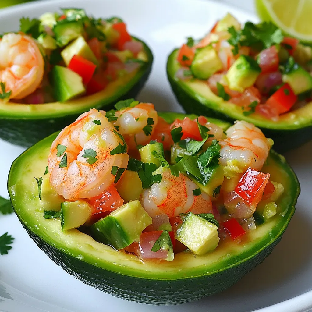 An eye-catching presentation makes your salad pop. Serve it in hollowed-out avocado skins for a fun twist. Just before serving, drizzle more lime juice on top. This adds a zesty kick. Pair your salad with a light drink, like iced tea or sparkling water. These drinks complement the spicy shrimp and creamy avocado perfectly.