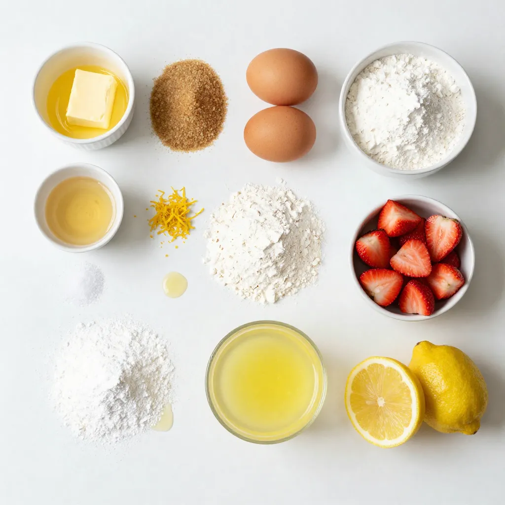 The ingredients for Strawberry Lemon Blondies create a perfect balance of sweet and tart. The unsalted butter adds richness. Light brown sugar gives a soft, moist texture. Granulated sugar adds just the right sweetness.