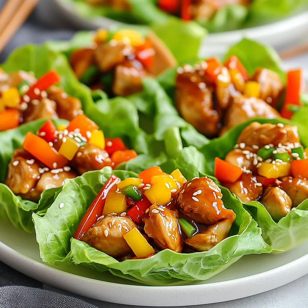 When it comes to serving, think vibrant colors. Use a large platter for the lettuce cups. Arrange them neatly. Add thinly sliced cucumbers or cherry tomatoes for a pop of color. You can also sprinkle sesame seeds on top for a nice touch. Serve with extra sauce on the side for dipping. This makes your dish look fun and inviting!