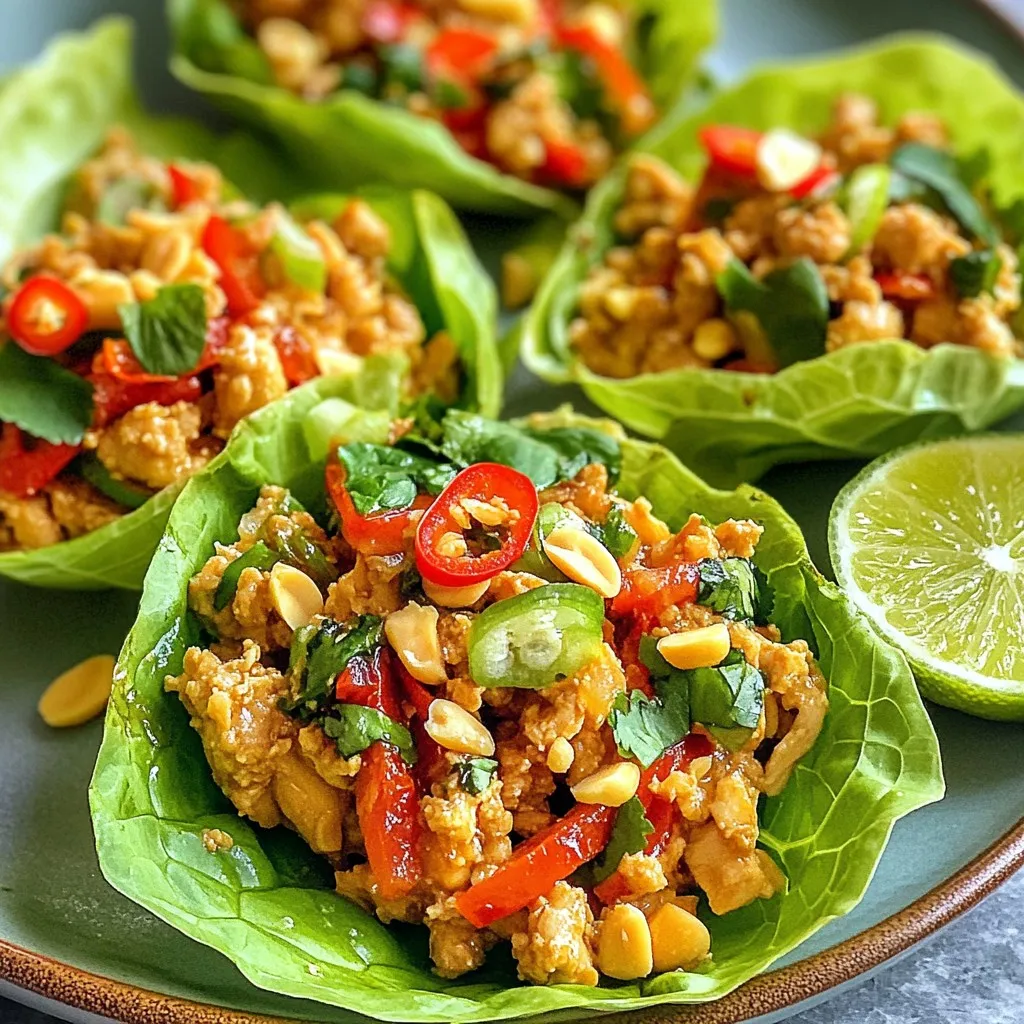 Garnishes can elevate your meal. Chopped peanuts add crunch and richness. Sliced chili gives heat for those who like it spicy. Lime wedges provide a fresh, zesty touch. These extras make your Thai Basil Chicken Lettuce Cups even better.