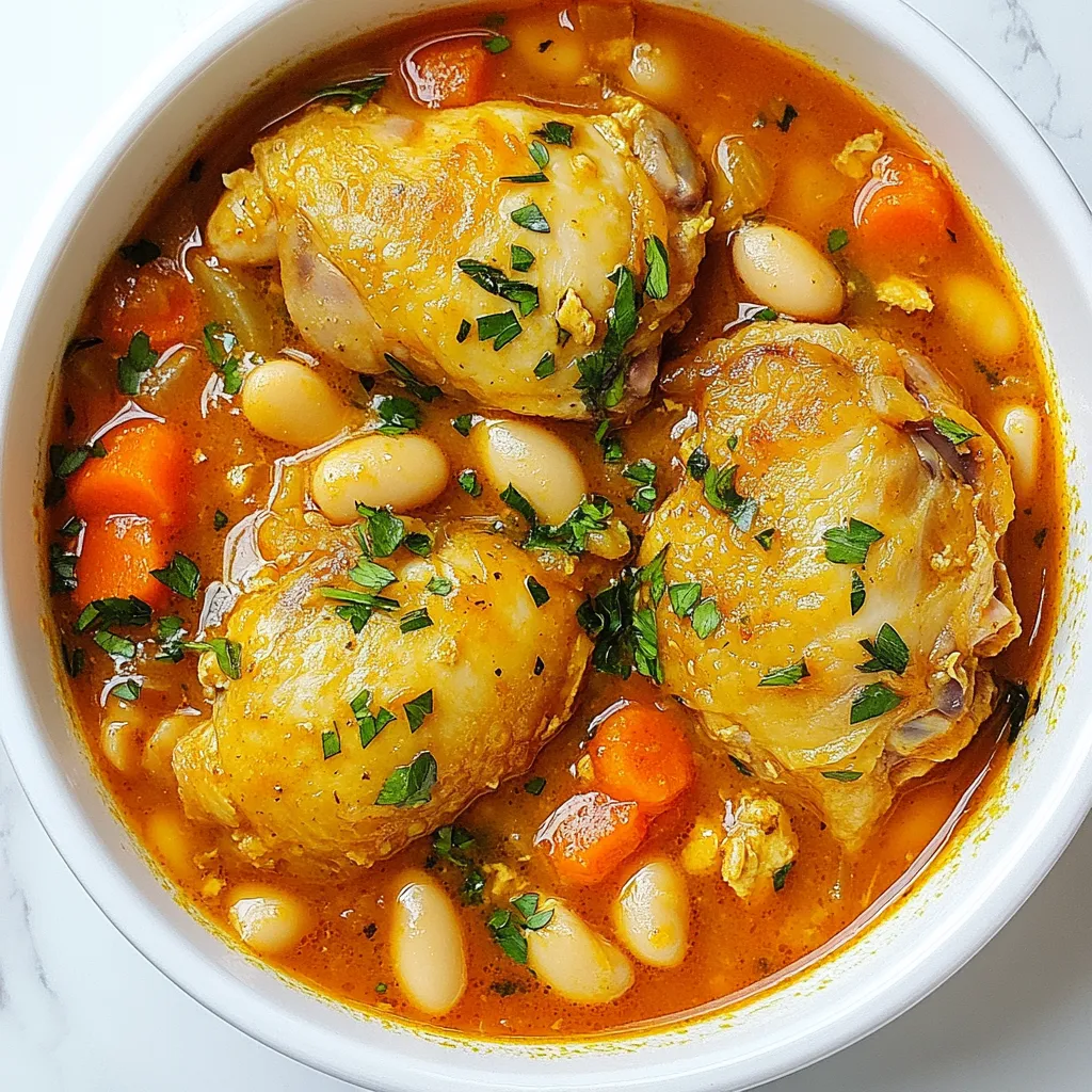 A hearty and flavorful stew featuring tender chicken, white beans, and aromatic herbs.